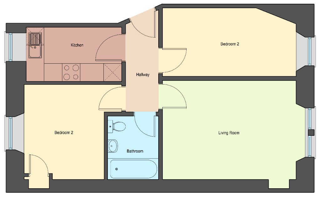 This property comprises of two spacious double bedrooms which come with double bed, wardrobe, desk and chair, a living area and a separate kicthen. The kitchen has high gloss cabinets and integrated appliances. There is a shower room with a walk in shower and a heated towel rail.
